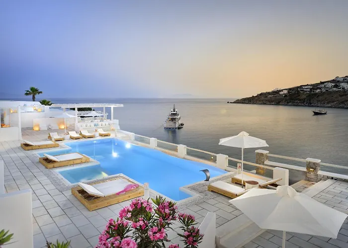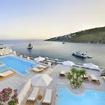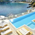 Nissaki Boutique Hotel Platys Gialos, som ligger inom 4 km från Lilla Venedig i Platys Gialos, erbjuder ett arkeologiskt museum. Gästerna erbjuds en spektakulär utsikt och en kaffebar på detta 5-stjärniga hotell, som har ett idealiskt läge nära båthamnen.